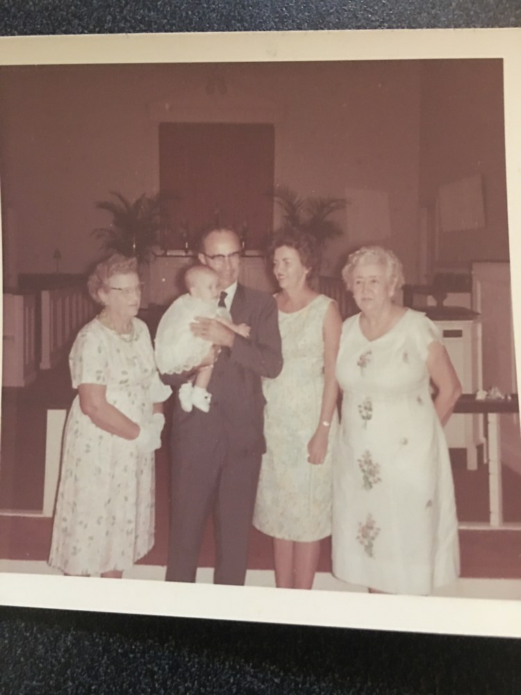 Grandma Nellie and Paw Paw’s house was a boarding house. They had roomers living upstairs. My sister remembers cleaning out the toilets as her chore at five years old. She also remembers that Grandma Nellie worked at a bakery. My sister told me that she also grew up in a boarding house; that was the house of my dad and his first wife. My sister grew up sleeping in a bed out on the covered, closed-in porch, so the indoor rooms could be used for boarders. What a different life!