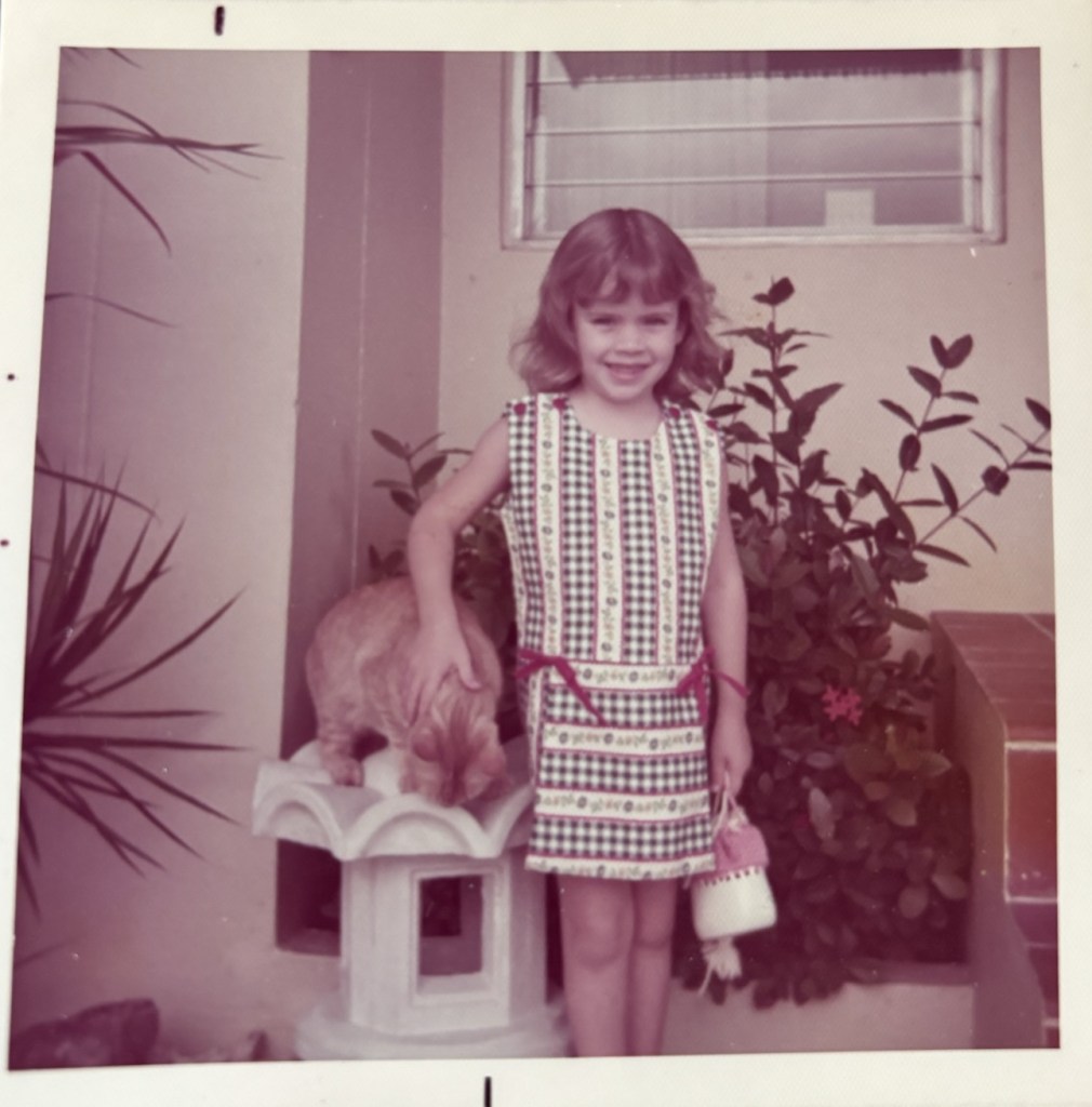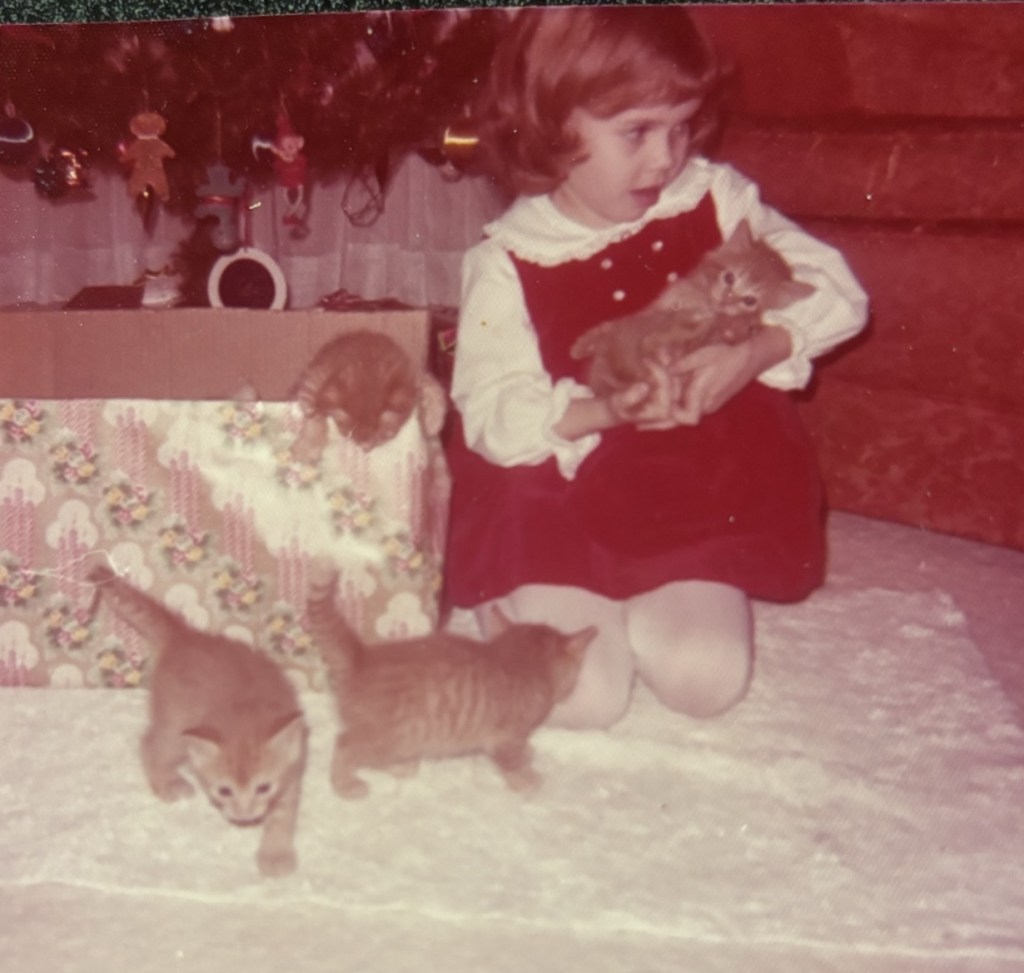 When I was in kindergarten, an orange-and-white striped tabby cat showed up in our yard. She sat on the porch with me after school and showed no inclination to leave. I patted her, and she just hung out.